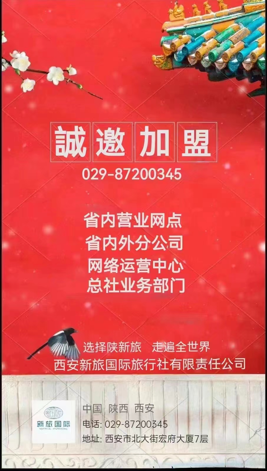 歡迎各地的有識之士能加盟到我們團(tuán)隊中來,資源共享、共謀發(fā)展!為旅行創(chuàng)造精彩,讓游客感動生活;選擇陜新旅,走遍全世界!
